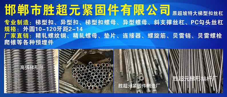 • ′本厂专业生产:穿墙丝、铝模丝杆、焊各种止水螺杆、穿墙丝专用法兰螺母 地脚丝,U型丝 现货供应:山型母、山型卡、步步紧、止水胶垫、楼梯护角、铁马镫、钢筋套筒 扣件螺丝、方垫、卡钩、对拉片、锥体母等建筑配件
