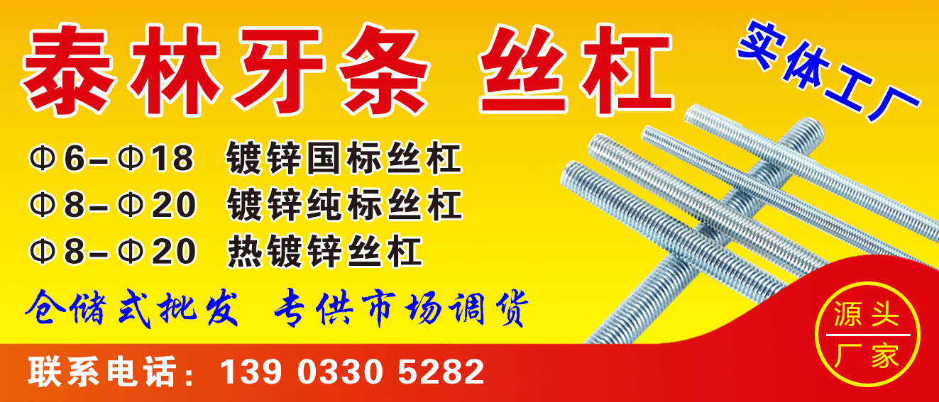 • 批发:3米丝杠、纯45#钢丝杆、M6-M481米镀锌1米丝杆 国标M6-48镀锌纯标丝杠M6-48高强丝杠、T型扣丝杠、普 通双头、高强双头、缩梗双头、拉条等 现货供应加工订做 7字、9字、伞把地脚、焊接地脚、大型地脚、型丝、方U型丝 斜拉条、各种加大加长内径勾头丝、尖丝、扁头丝、缩梗U型丝 瓦钩丝、元钩、方钩各种异型钩件兼营:山型母