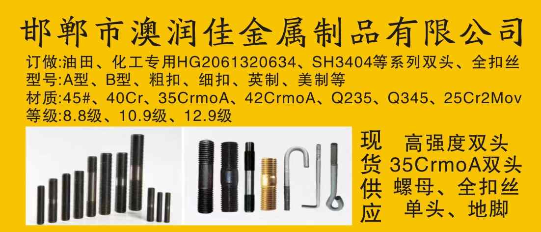 • 45#、40Cr、35Crmo、8.8级、10.9级、12.9级、高强度双头 全扣丝杠、GB897、898、899、美标、英标、细扣系列高强度双头 全扣丝、化工、油田、电厂专用(GB20613、20634、SH3404)等 高强度双头全扣丝订做地脚、异型件