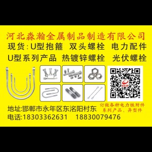 • 热镀锌,粉末镀,达克罗,渗锌,U型抱箍,双头,加大孔母,电力销孔栓,电力螺栓,铁塔栓,高低压电瓷附件,脚钉,U型丝,护栏丝