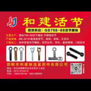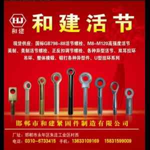 • 本厂主要生产:GB798-88活节螺栓,m8-m120高强度活节、英制、美制活节螺栓、正反扣调节螺栓,各种异型活节螺栓、双耳拉环、吊环,锻打各种异型件,U型挂环、整体模锻 联系电话15831599009(微信同号)