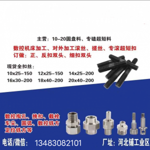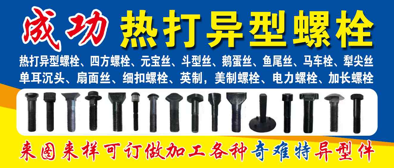 定做m6-m100/10-6000mm,地脚螺栓、u型螺栓、双头螺栓、全牙丝杆、t型扣丝杠、热打螺栓、热打t型栓、四方螺栓、鱼尾螺栓、马车栓、沉头带榫螺栓、焦化炉专用勾头螺栓、哈芬槽螺栓、热打加长螺栓、活节螺栓、元宝丝、鹅蛋丝、沉头螺栓、内六角螺栓、铆钉、销轴,4.8级、8.8级、10.9级、12.9级,备有现货双头螺栓m6-m36(细杆)地脚螺栓现货m16-m30(七字粗杆、细杆),筛网勾头螺栓m10-m20,定做各种预埋件,焊接件,车床加工件。 可做表面处理:煮黑、电镀锌、电镀黑锌、电镀军绿、电镀黑锌、黑色电泳处理、镀铬、镀镍、镀钛、热镀锌、达克罗、久美特、渗锌、粉末镀锌、喷塑、特氟龙、耐落涂胶。