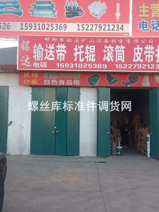 螺丝库 认证实体企业 高强度皮带扣、运输皮带扣、A6皮带扣、A8皮 带扣、 T10皮带扣、V6皮带扣、六针皮带扣、SU皮带扣、各种异型皮带扣、 皮带螺栓、皮带钉、各种配套订扣机、串条、皮带夹板、靠背销、 弹性销、工矿配件、减震吊钩、滚简、托辊、支架、轴座、齿轮、 链条、输送带等