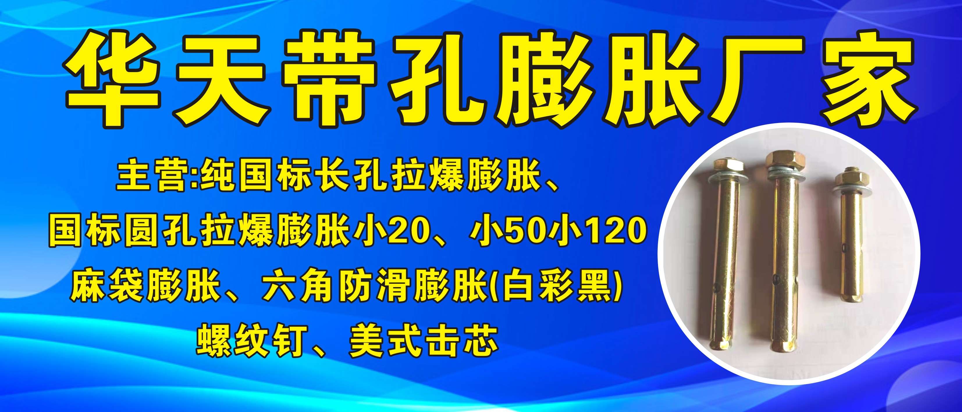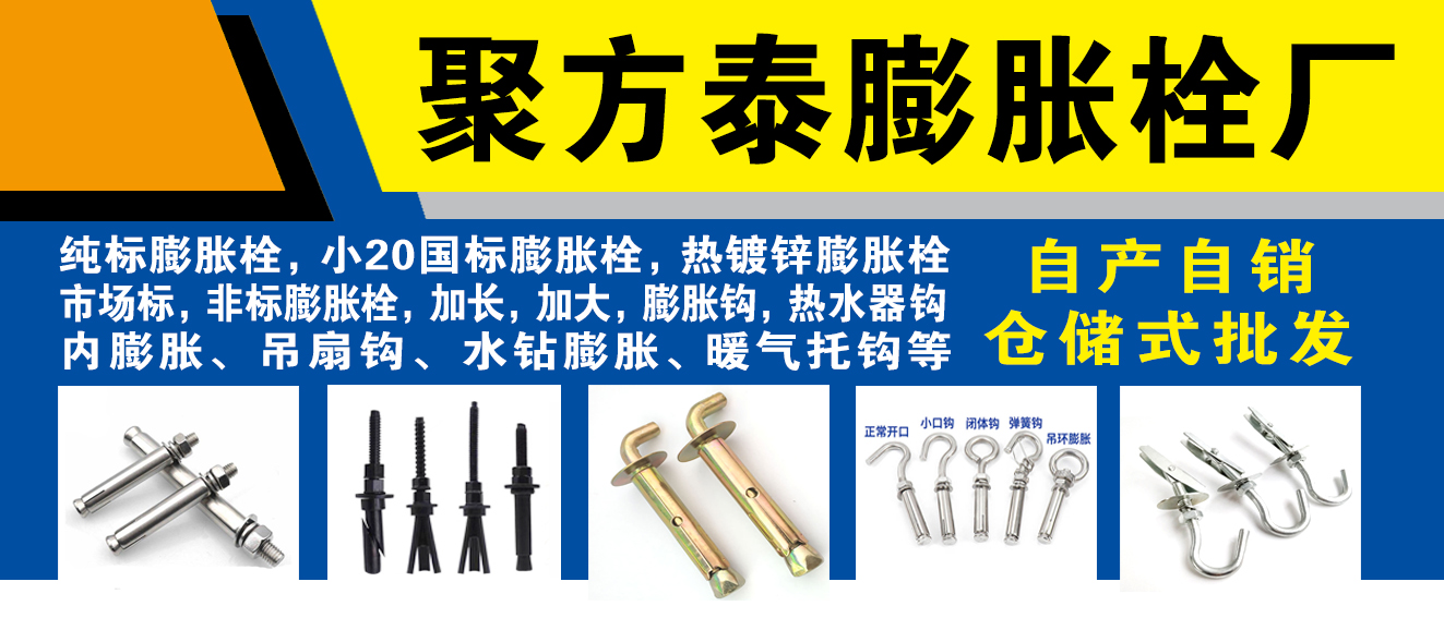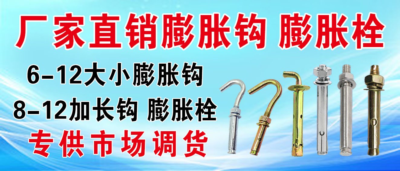 主营:M6_M30普通、中标、国标膨胀栓,膨胀钩、热水器钩、内膨胀、吊扇钩、暖气托后,水钻膨胀。