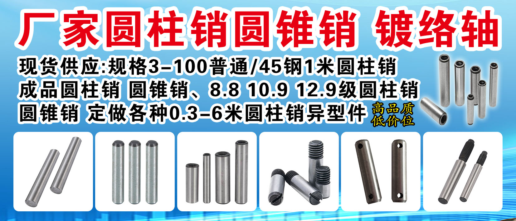 • 永龙紧固件制造有限公司主营:圆柱销、圆锥销、内螺纹圆柱销、内螺纹圆锥销,6-80丝杆、45钢、8.8级、10.9级、12.9级丝杆,细扣丝杆、反扣丝杆、细反丝杆、T型扣丝杆、高强双头、8.8级双头、10.9级双头、12.9级双头、35CrmO全螺纹螺柱,平键、方键、45钢精品平键、定做各种奇难异型件,热线:0310-6895584 13932096207(微信同步)
