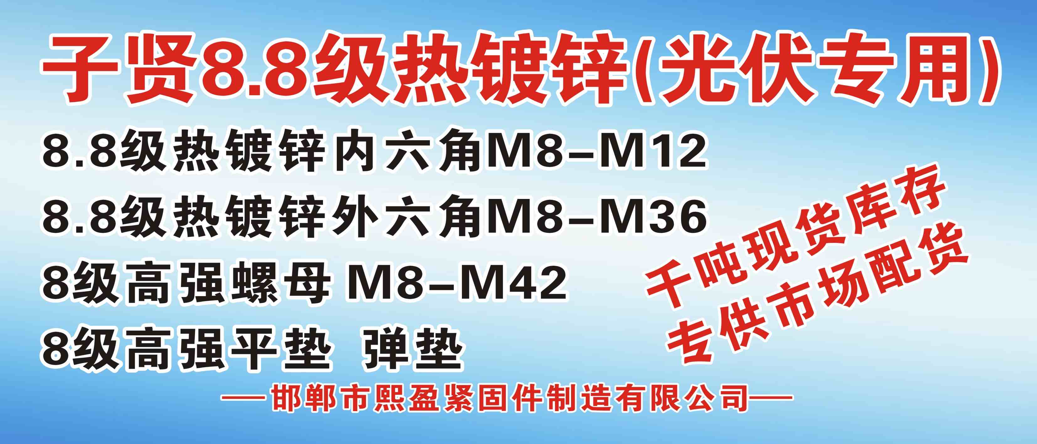8.8级热镀锌内六角M8-M12、 8.8级热镀锌外六角M8-M36、 8级高强螺母 M8-M42、 8级高强平垫 弹垫、 千吨现货库存 专供市场配货