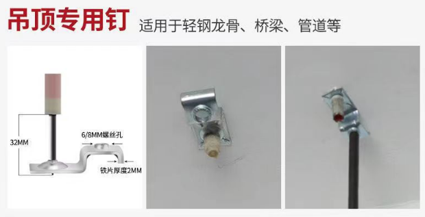吊顶神器、射钉、消音钉、双基药射钉、南山一体、 磷化棉射钉、木龙骨钉、管卡钉、消防钉、消音射钉器。