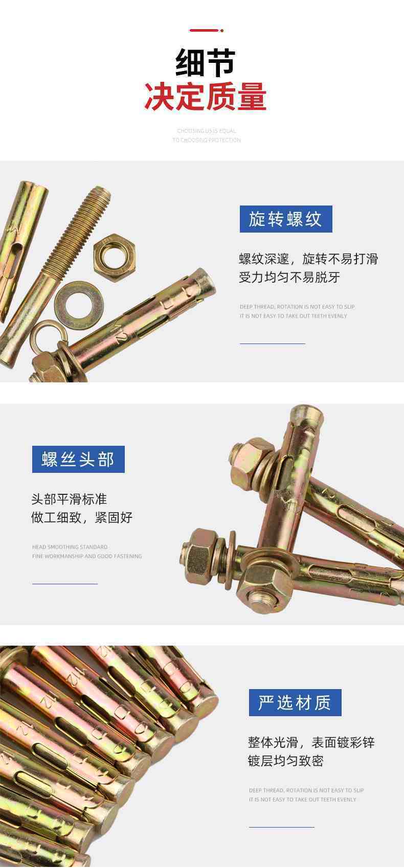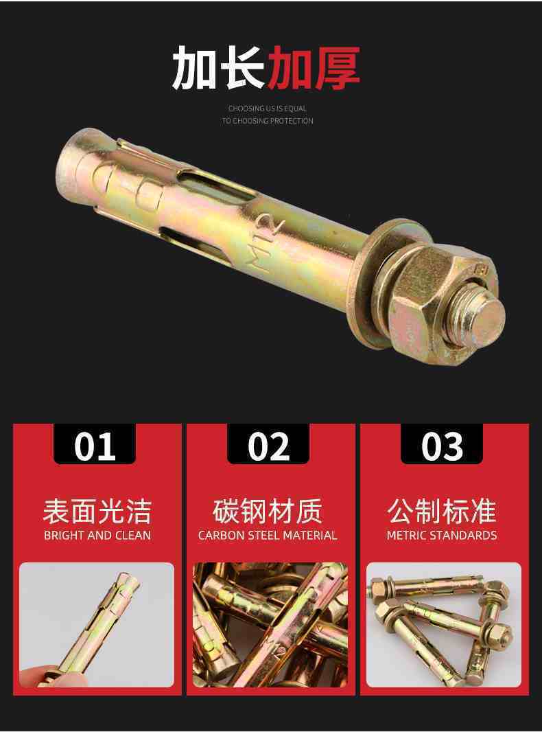 正国标小头彩长孔胀栓、国标膨胀栓M6、M8、M10、M12、带孔膨胀螺栓,专供市场配货,送货及时, 价格 质量 有保证,