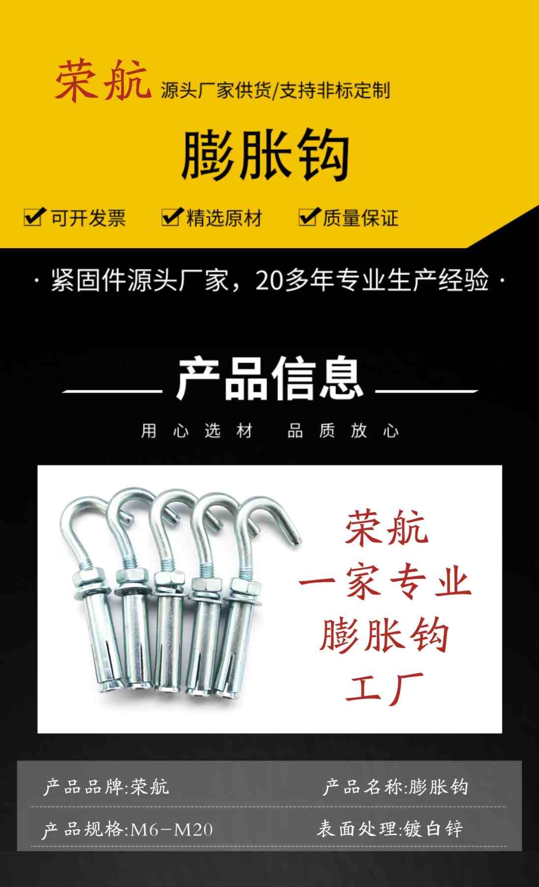 M6-M20膨胀钩、加长膨胀钩 镀锌现货规格齐全 可订做各种膨胀钩