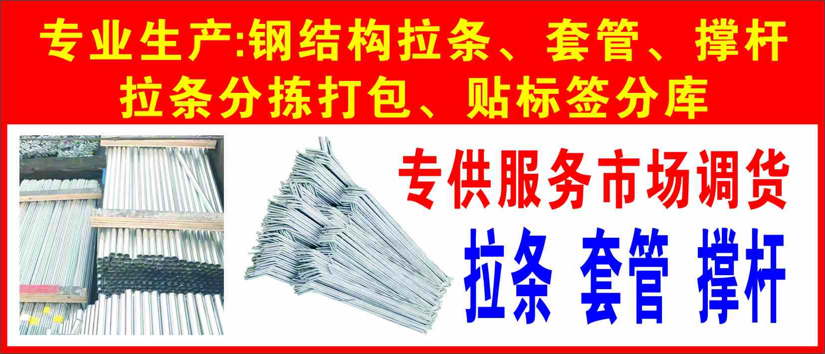 专业生产钢结构,套管,撑杆,拉条分拣打包,贴标签分库。(专供服务市场调货)
