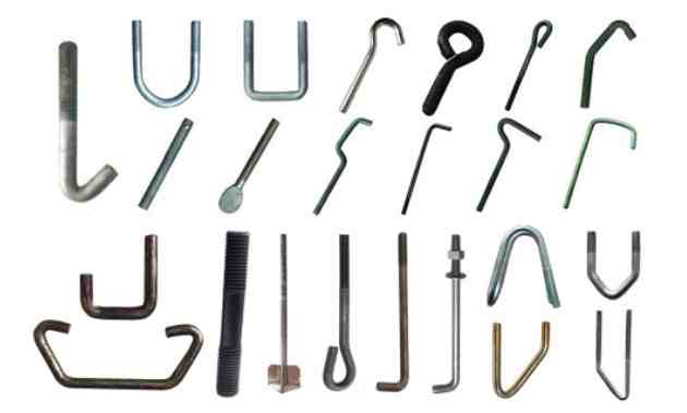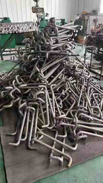 φ12-φ80 7字地脚、9字地脚、焊接地脚、伞把地脚、预埋件、双头丝、丝杠、蜗牛环、方圆U型丝、煤矿拉杆、钩头丝、异形钩件 材质:Q235B、35#、35CrmoA、45#、40Cr、16锰