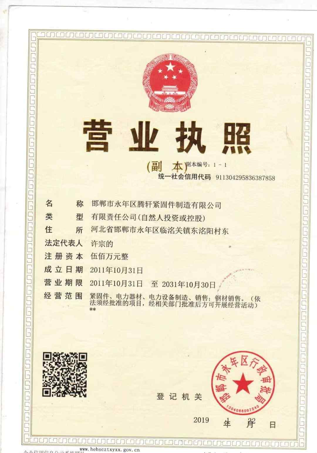 邯郸市永年区腾轩紧固件制造有限公司