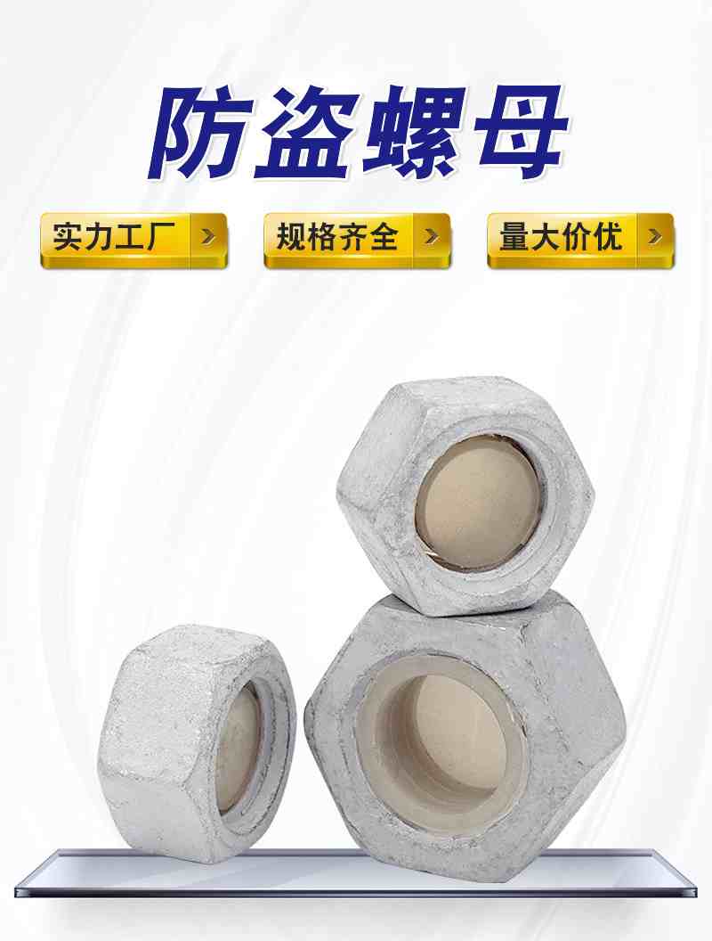 防盗螺母系列.单珠防盗,双珠防盗、扭断防盗、扣紧螺母、规格M10-M64、热镀锌6.8级铁塔螺栓、常年备有大量现货