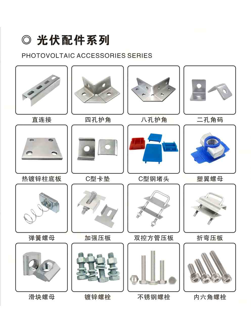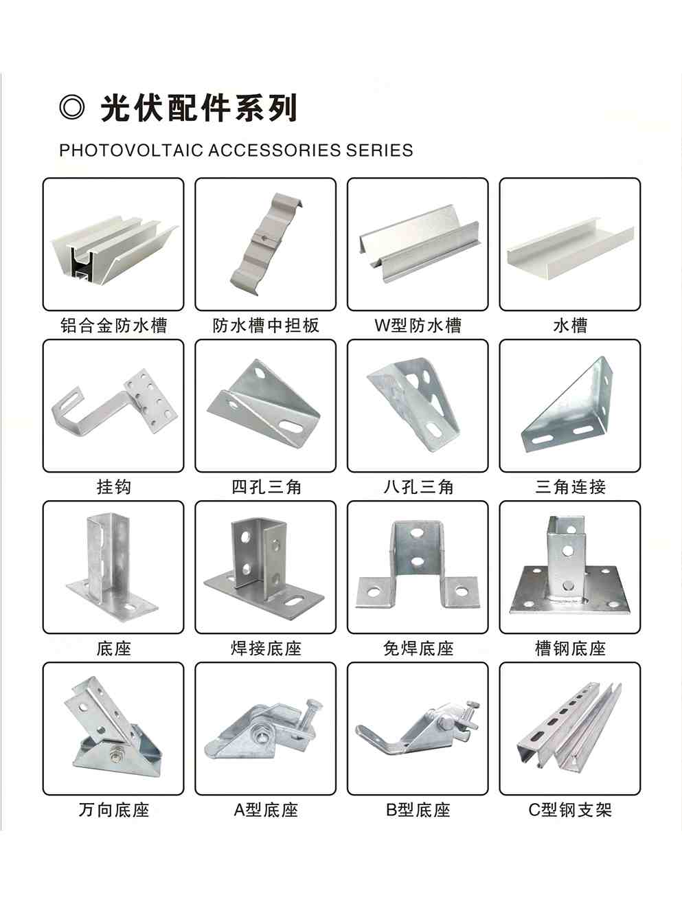 直连接 方管压板 折弯压板 热镀锌螺栓防水槽 三角连接件 挂钩 底座 C型钢 中压 边压 角驰夹具等各种光伏配件