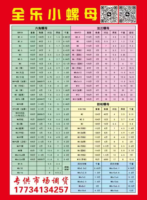 全乐小螺母大全