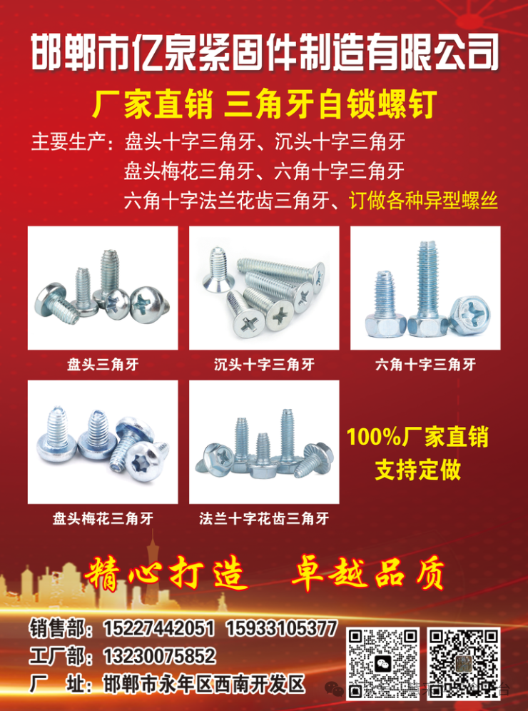 亿泉三角牙自锁螺钉(专供市场调货)